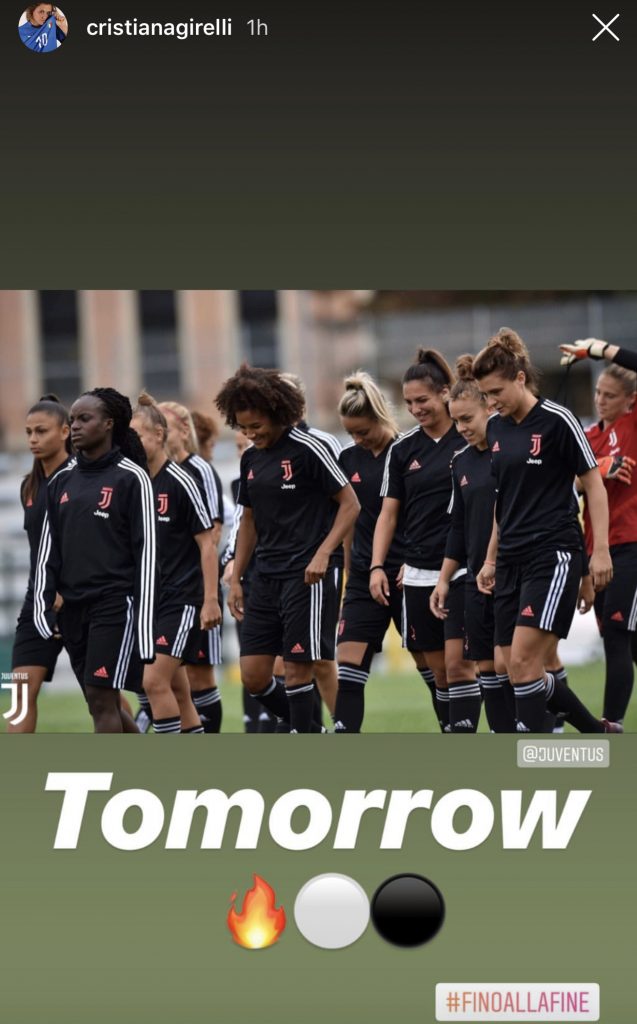 Tra le protagoniste più attese ci sarà naturalmente Cristiana Girelli, attaccante che oggi tramite una story su Instagram ha cercato di dare la carica alle sue compagne di squadra, postando una foto dell’allenamento odierno con un diretto : “Tomorrow” accompagnato da una fiamma e due cerchi, uno bianco ed uno nero.