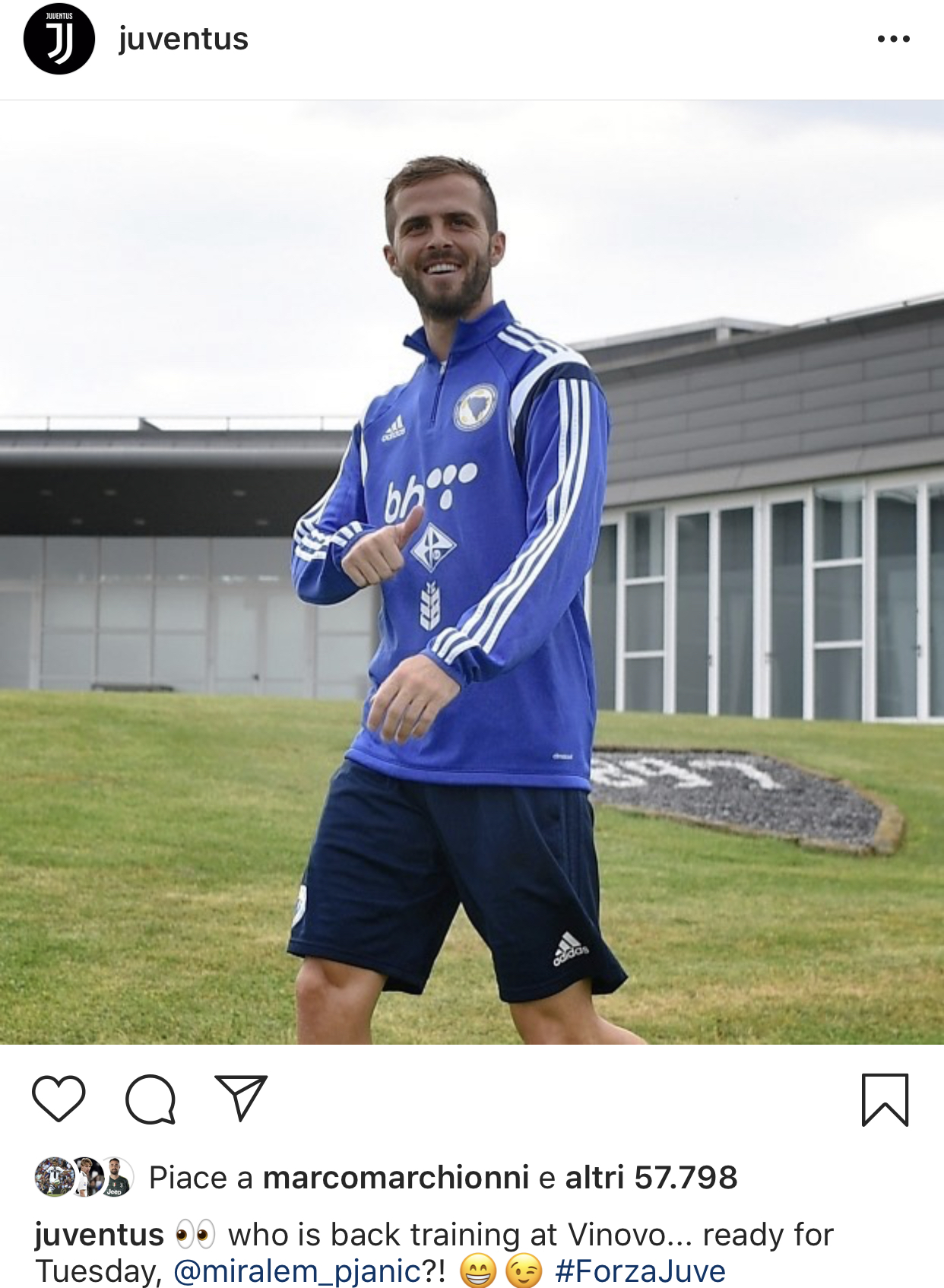 Gli azzurri dovranno vedersela con la Bosnia, la cui stella Miralem Pjanic, è stato immortalato dal club bianconero a Vivono dove la nazionale degli ex Balcani è impegnata in un mini-ritiro di preparazione alla super sfida di Martedi, proprio a Vinovo dove la Juventus . Il club bianconero ha così pubblicato una foto del centrocampista con la divisa della propria nazionale commentando in attesa della super favorita in questo modo: “Guardate un pò chi è tornato a Vinovo per fare un allenamento?”.