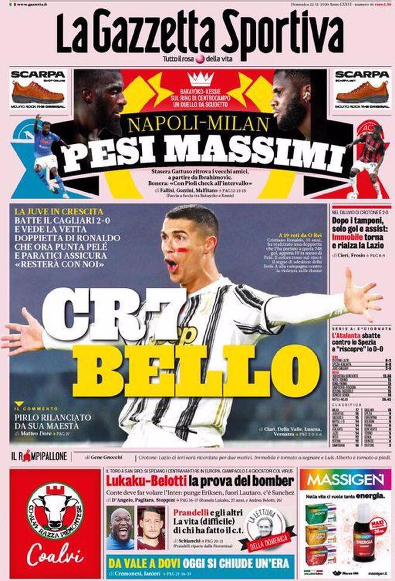 Prima pagina Gazzetta 22-11-2020