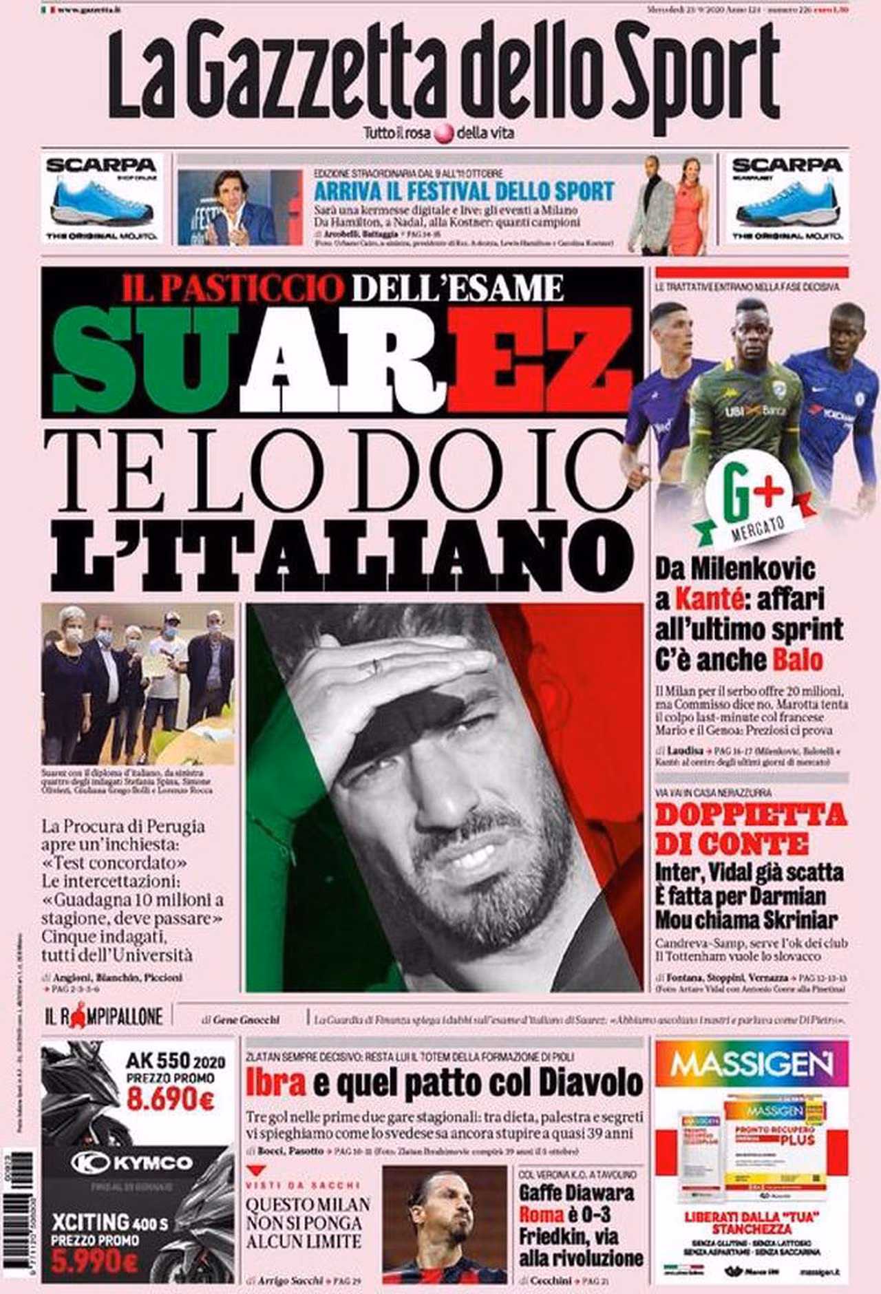 Prima pagina Gazzetta 23-09-2020