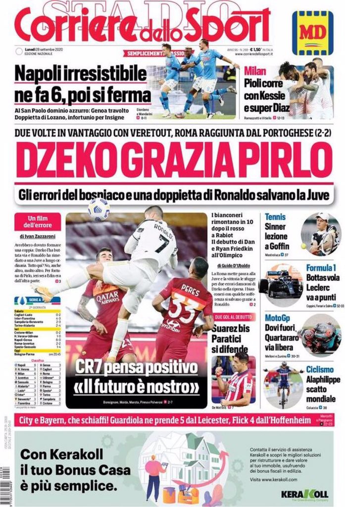 La prima pagina del Corriere dello Sport: “Dzeko grazia Pirlo”