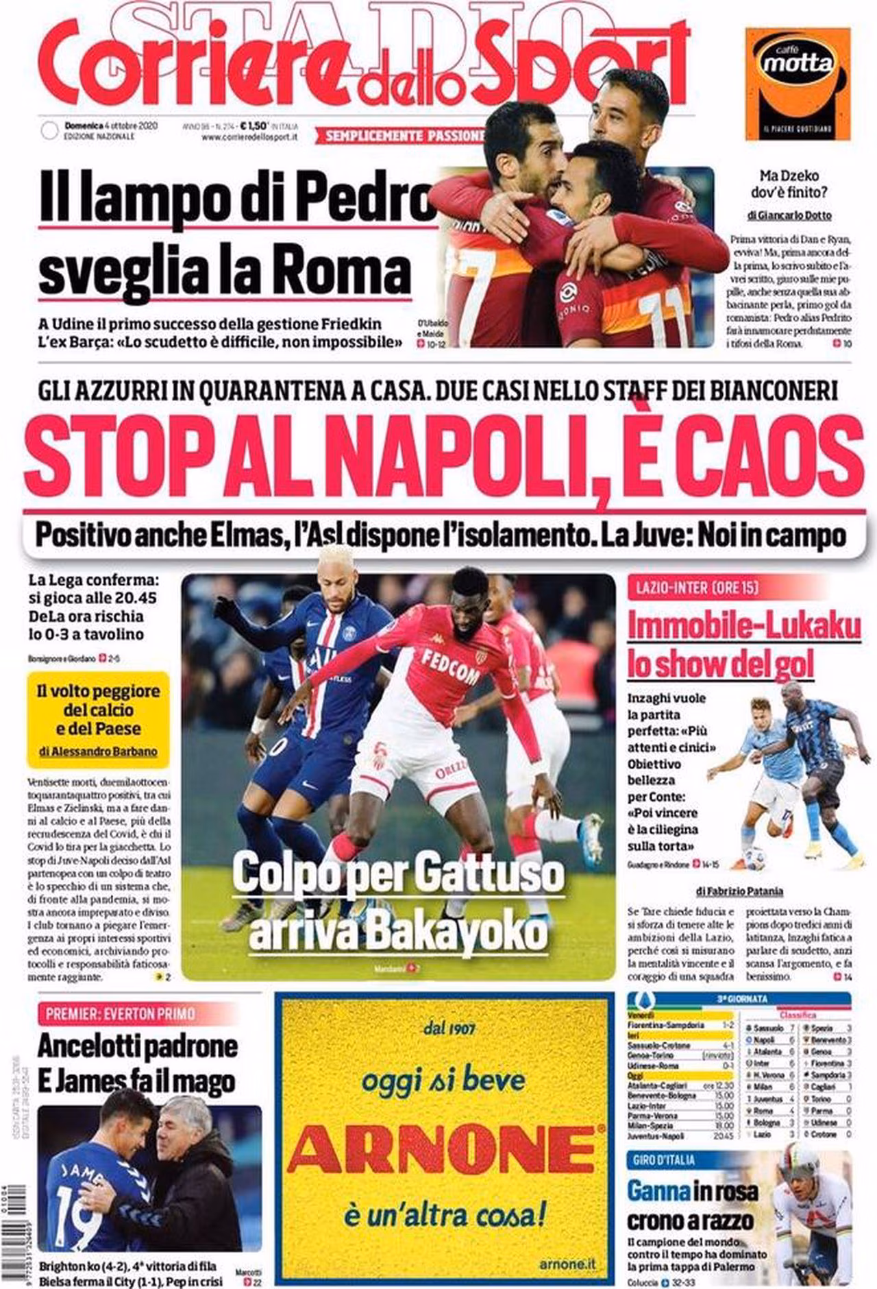 Prima pagina Corriere 04-10-2020