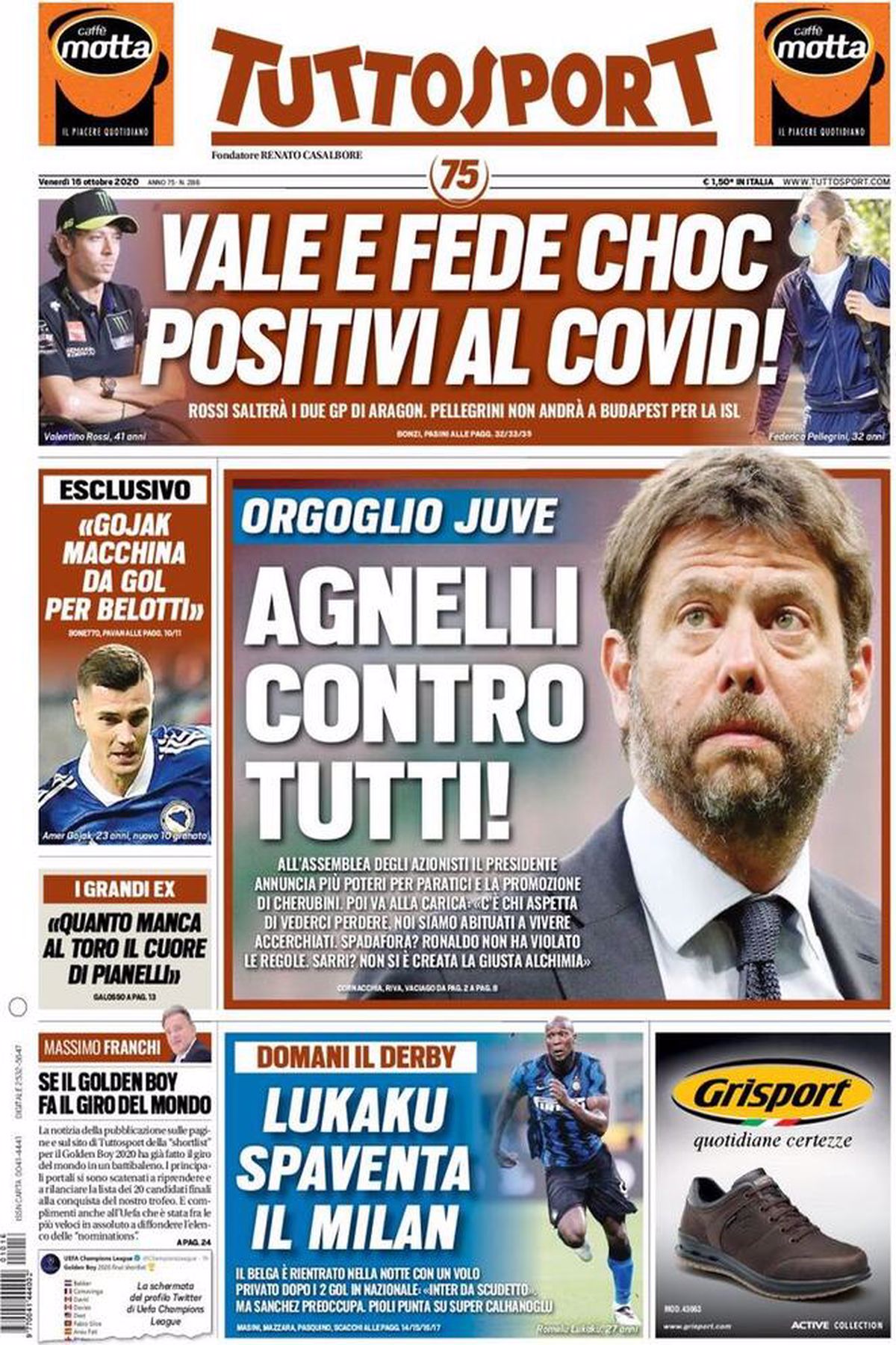 TORINO – La prima pagina di Tuttosport intitola così: “Agnelli contro tutti!”. Il riferimento è alla conferenza stampa di Andrea Agnelli di ieri pomeriggio, in cui ha parlato della passata stagione e del futuro alla Juventus.
