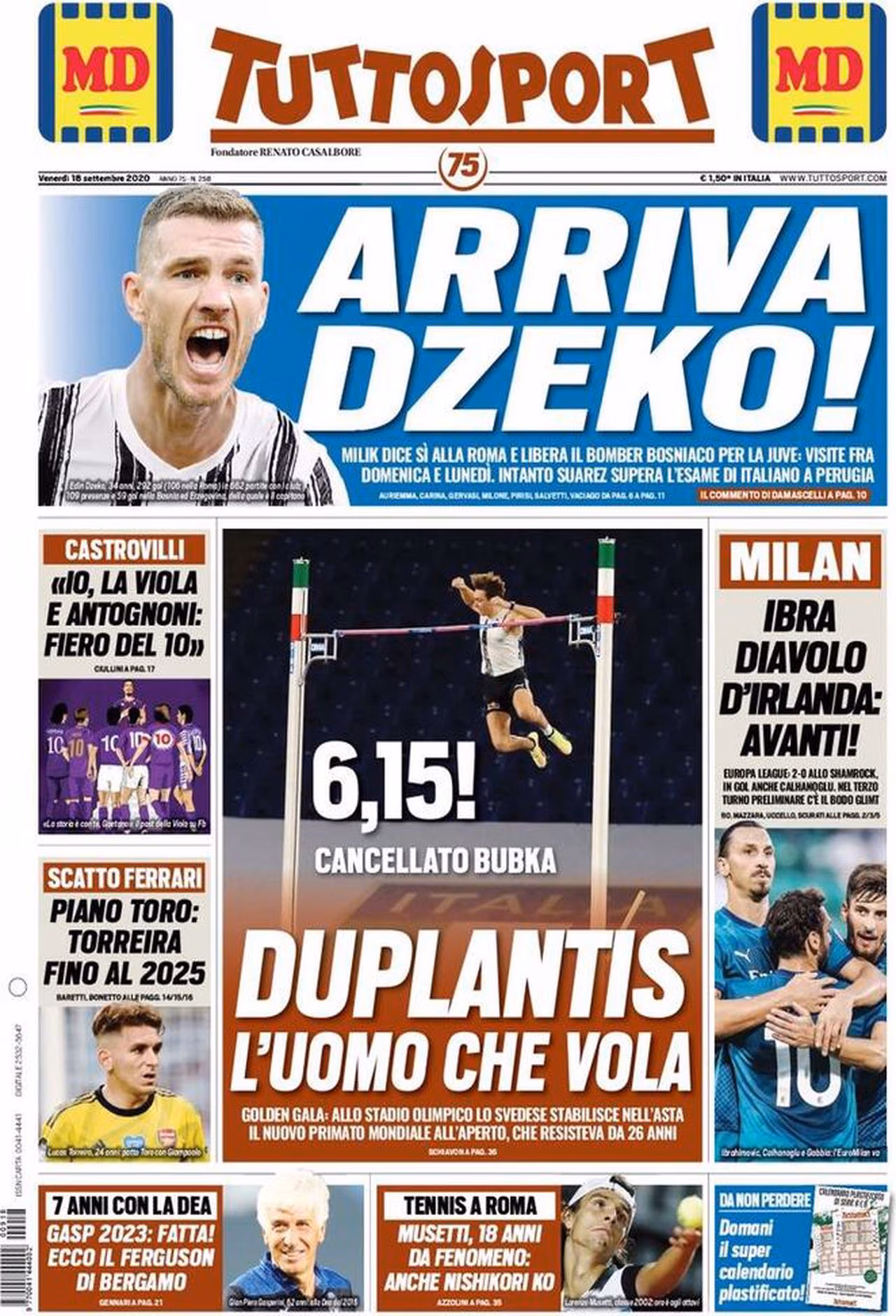 Prima pagina TuttoSport 18-09-2020