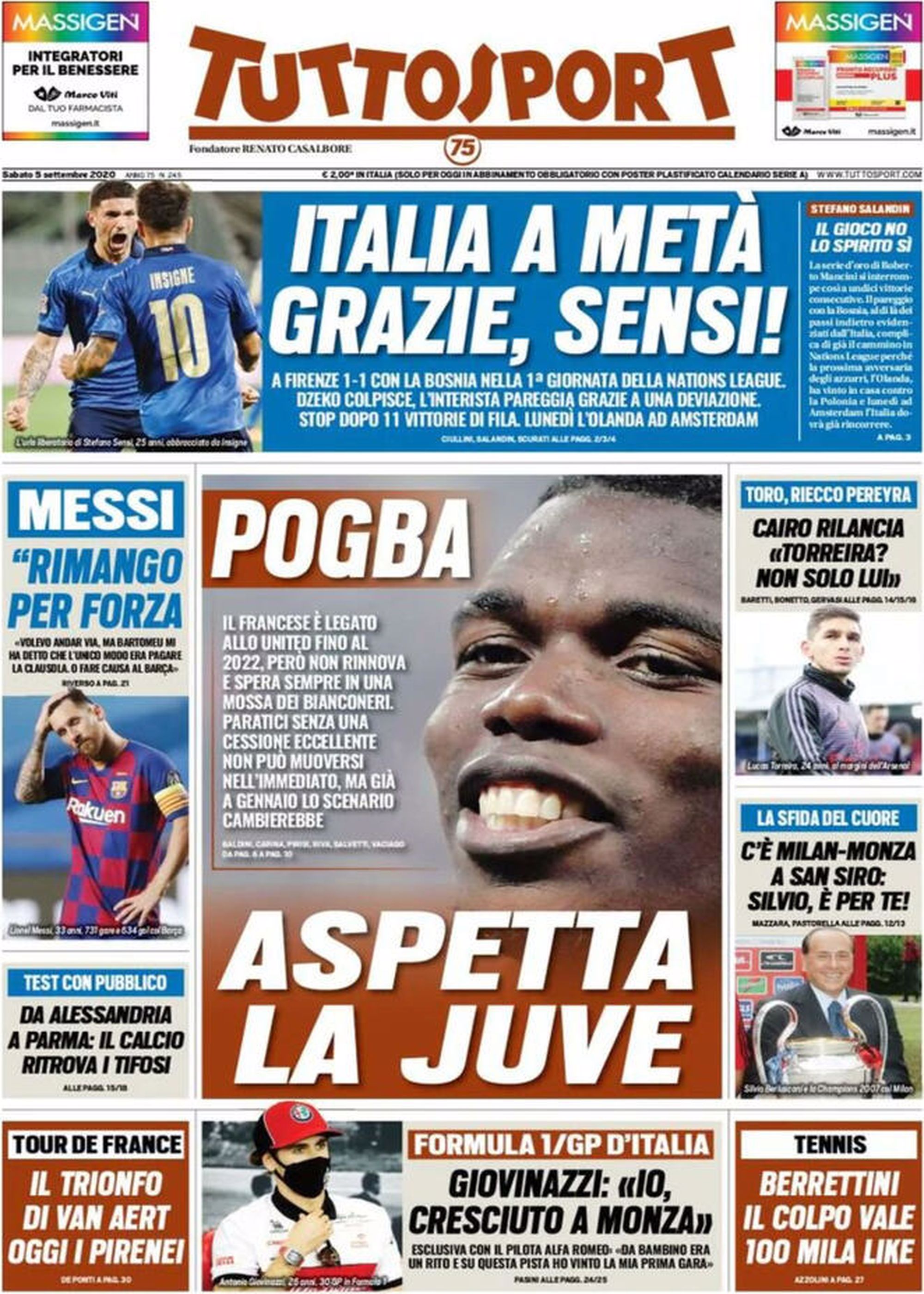 TORINO – La prima pagina di Tuttosport intitola così: “Pogba aspetta la Juve”. Il francese è legato al Manchester United fino al 2022, però non rinnova e spera sempre in una mossa dei bianconeri. Paratici senza una cessione eccellente non può muoversi nell’immediato, ma già a gennaio lo scenario cambierebbe. Ma attenzione perché, proprio nelle scorse ore, è esplosa una nuova bomba di mercato in casa bianconera. Clamoroso, Gianluca Di Marzio dà l’annuncio in diretta: “Contatti avviati con…” >>>VAI ALLA NOTIZIA