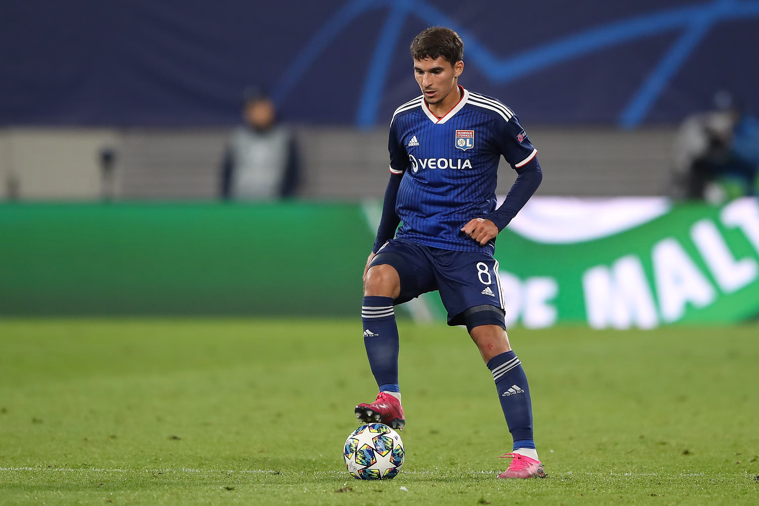 Houssem Aouar in azione con la maglia del Lione