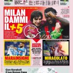 La prima pagina di Tuttosport: “Milan in fuga, Juve in riga”
