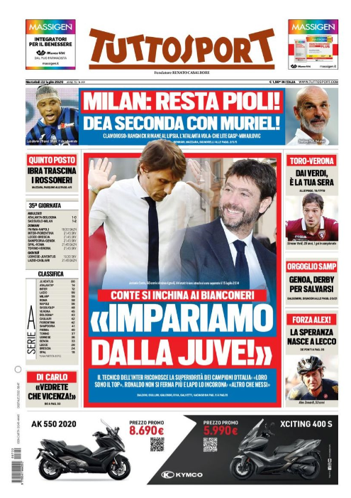 Tuttosport, la prima pagina: “Impariamo dalla Juve!”