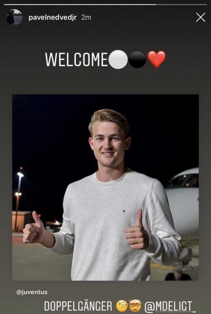 Tra i primi a dare il benvenuto all’olandese sui social è stato il figlio del vice-presidente, Pavel Nedved Junior, che ha postato la foto del giocatore con un grande “Benvenuto” in primo piano col quale ha voluto accogliere il campione che guiderà la retroguardia della squadra di Sarri per i prossimi anni.
