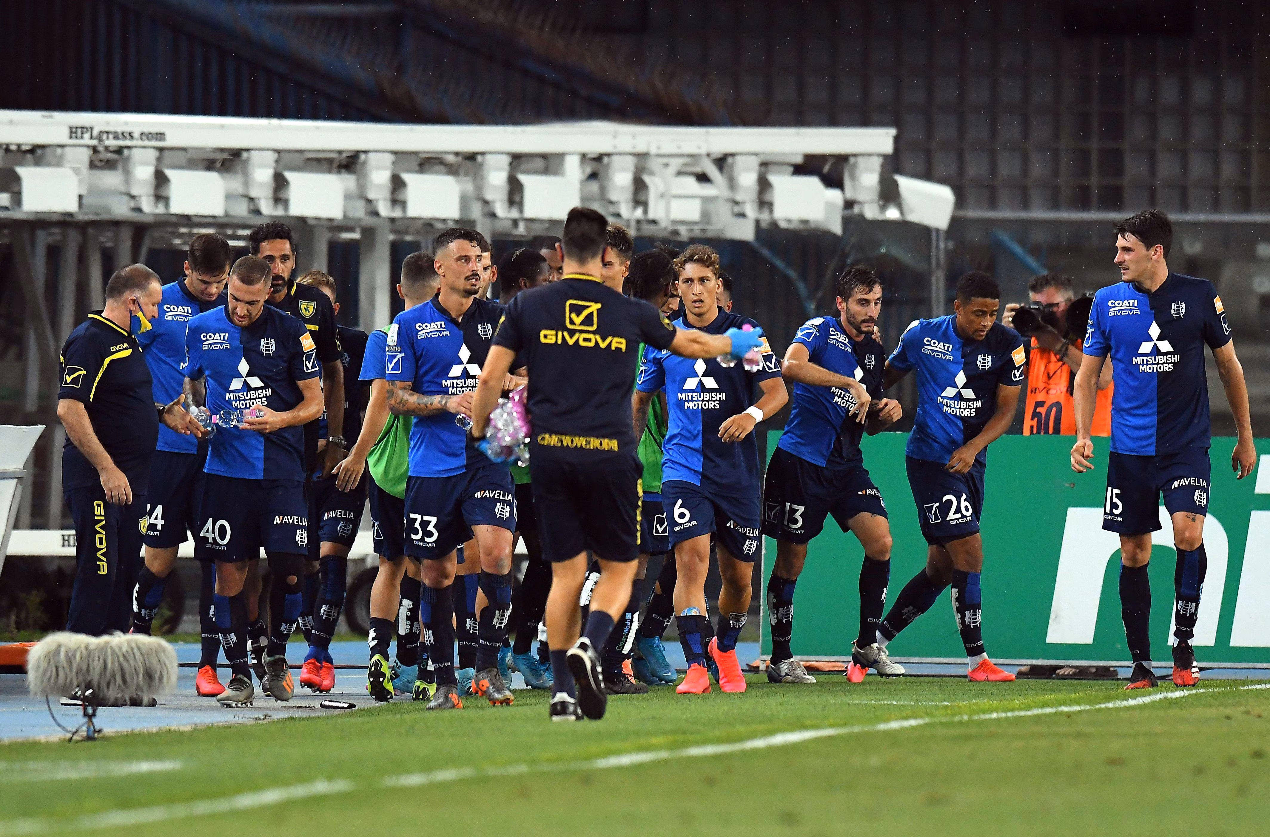 VERONA, ITALY - JULY 31: Luca Garritano of Chievo Verona celebrates after scoring the opening goal with teammates during the serie B match between Chievo Verona and Pescara Calcio at Stadio Marcantonio Bentegodi on July 31, 2020 in Verona, Italy. (Photo by Alessandro Sabattini/Getty Images for Lega Serie B)