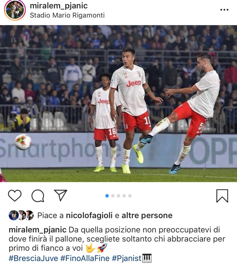 Il bosniaco, al termine del match ha voluto celebrare questa sua ennesima prodezza con un post anche un pò scherzoso visto che ha commentato la foto che immortala il momento del tiro decisivo in questo modo: “Da quella posizione non preoccupatevi di dove finirà il pallone, scegliete soltanto chi abbracciare per primo di fianco a voi”. Tra i commenti al post spicca quello di un ex bianconero Marco Borriello che ha scritto: “Mr. Mihajlovic docet” accostando la capacità balistica di Pjanic a quella del tecnico del Bologna che in campo ha realizzato gol di pregevole fattura nel corso della sua carriera.