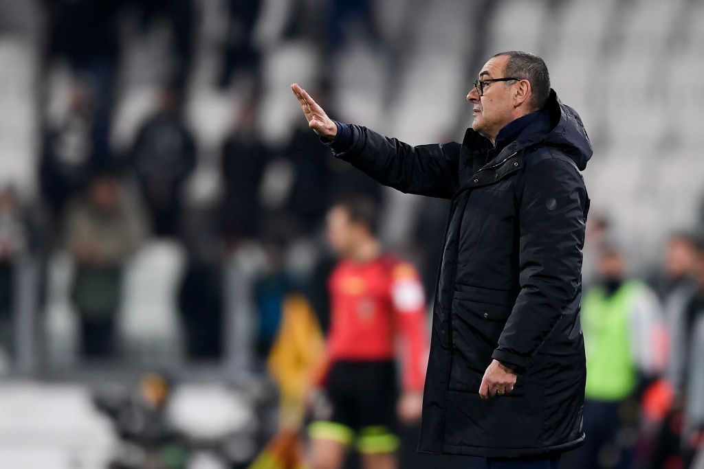 TURIN, ITALY - JANUARY 19: head coach of Juventus Maurizio Sarri issues instructions to his players during the Serie A match between Juventus and Parma Calcio at on January 19, 2020 in Turin, Italy. (Photo by Daniele Badolato - Juventus FC/Juventus FC via Getty Images)