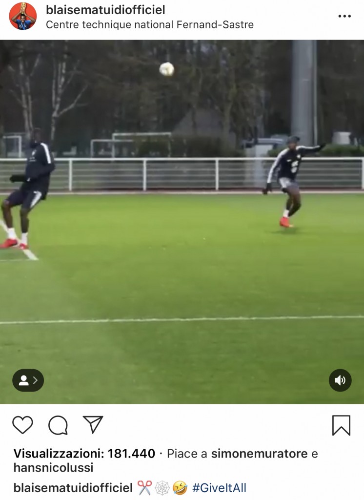 Blaise Matuidi ha postato sul proprio profilo Instagram un video relativo all’allenamento svolto con la nazionale francese.