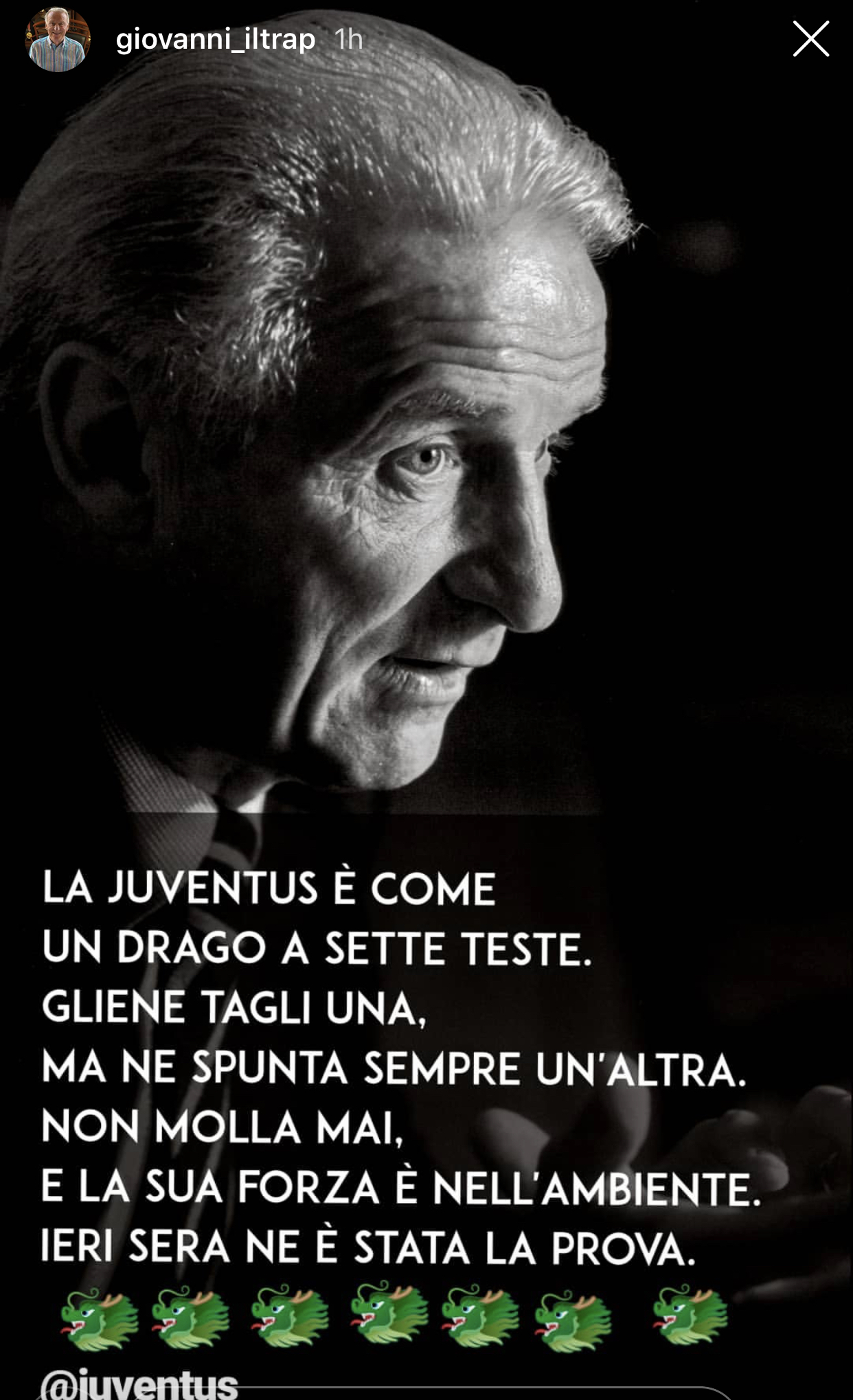 Giovanni Trapattoni che ha deciso di aprire un proprio profilo personale sul social network Instagram, questa mattina ha voluto congratularsi con la Juventus per l’incredibile rimonta conquistata ieri sera.