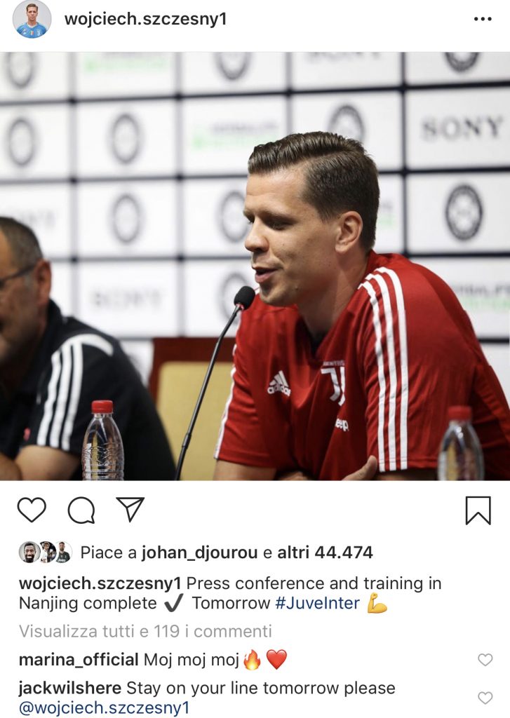 Wojciech Szczesny oggi ha postato sul proprio profilo Instagram una foto della conferenza tenuta quest’oggi a Nanjing insieme a Maurizio Sarri.