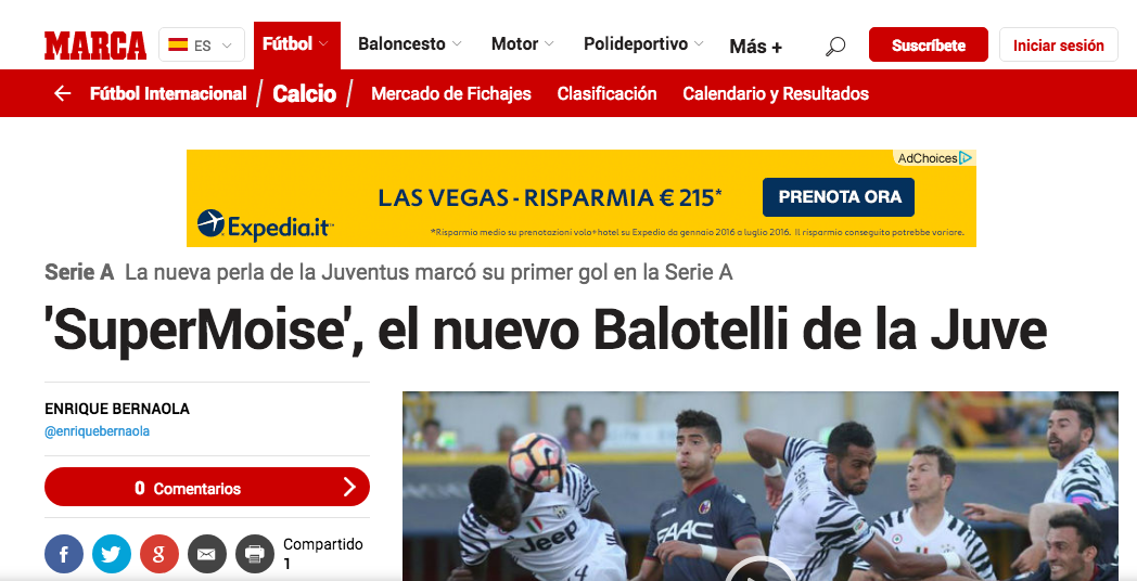 TORINO – Kean incensato anche all’estero. Anche dalla Spagna, tessono le lodi al giovane talento bianconero. Scrive il MARCA: “Moise Kean continua a crescere a passi da gigante. Ha calcato il manto erboso in una partita contro il Pescara, a soli 16 anni, dopo essere diventato il primo giocatore di questo secolo che ha debutto in Champions League alcuni minuti contro il Siviglia. Ieri è stato anche autore del gol vittoria. Kean piace a mezza Europa, l’altra metà vorrebbe acquistarlo, lui che è gestito da Mino Raiola, agente di stelle come Ibrahimovic, Pogba (il suo idolo) o Balotelli, giocatore al quale è stato spesso accostato.