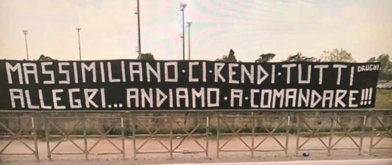 TORINO – Antivigilia del ritorno dei quarti di finale di Champions League in casa bianconera e arrivano buone notizie per la Juventus da Vinovo. La prima riguarda la condizione di Paulo Dybala, che oggi si è allenato in parte con il gruppo e con ogni probabilità sarà in campo dal primo minuto con il Barcellona. Oltre alle buone notizie dal campo, anche i tifosi bianconeri quest’oggi hanno voluto caricare la squadra e soprattutto l’allenatore della Juventus Massimiliano Allegri. È stato esposto uno striscione al centro sportivo di Vinovo in vista della sfida contro il Barcellona: “Massimiliano ci rendi tutti Allegri… Andiamo a comandare!!!”
