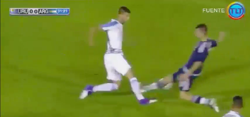 TORINO – Un fallo terrificante, che rischiava di rompere la gamba a Rodrigo Bentancur, quello del giovane argentino Tomas Belmonte nel Sudamericano Under 20. Al trentunesimo minuto della sfida tra Argentina e Uruguay a Quito Bentancur è stato steso dal terrificante intervento del centrocampista del Lanus, che è stato immediatamente espulso dall’arbitro. Fortunatamente per l’Uruguay e per la Juve nessun danno significativo per Rodrigo Bentancur, che dopo lo spavento per il duro colpo è tornato regolarmente in campo, guidando il suo Uruguay alla netta vittoria per 3-0 sull’Argentina.