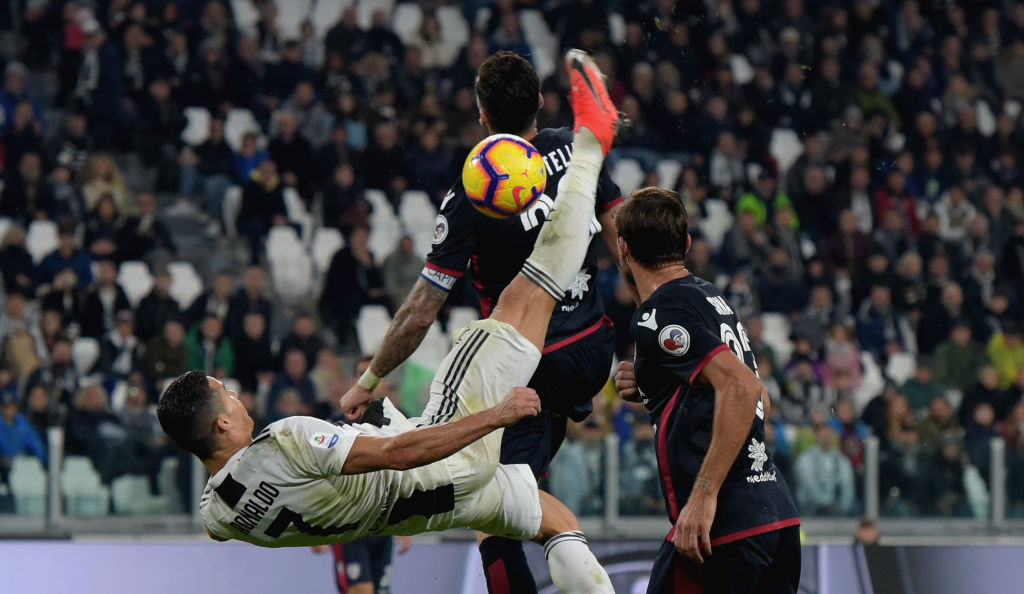 Cristiano Ronaldo ci riprova in rovesciata in Juventus-Cagliari.