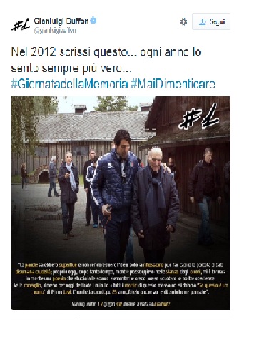 TORINO – Attraverso il suo profilo Twitter ha parlato Gigi Buffon nella Giornata della Memoria, per non dimenticare quel pensiero che scrisse nel 2012 dopo aver visitato il campo di concentramento di Auschwitz: “Nel 2012 scrissi questo… ogni anno lo sento sempre più vero… #GiornatadellaMemoria #MaiDimenticare”.