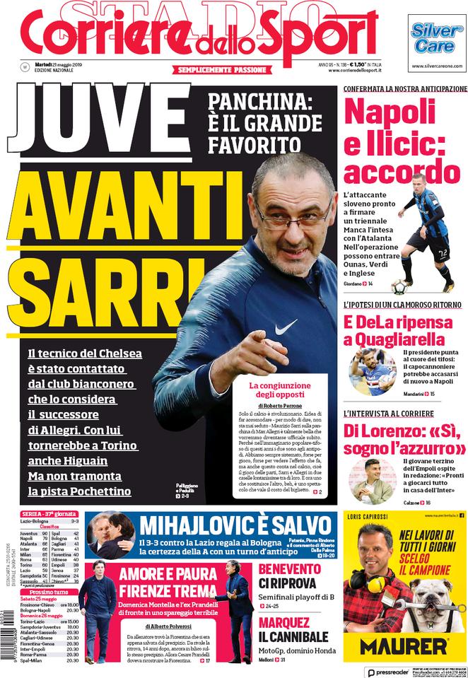 TORINO – Ecco la prima pagina odierna del Corriere dello Sport: