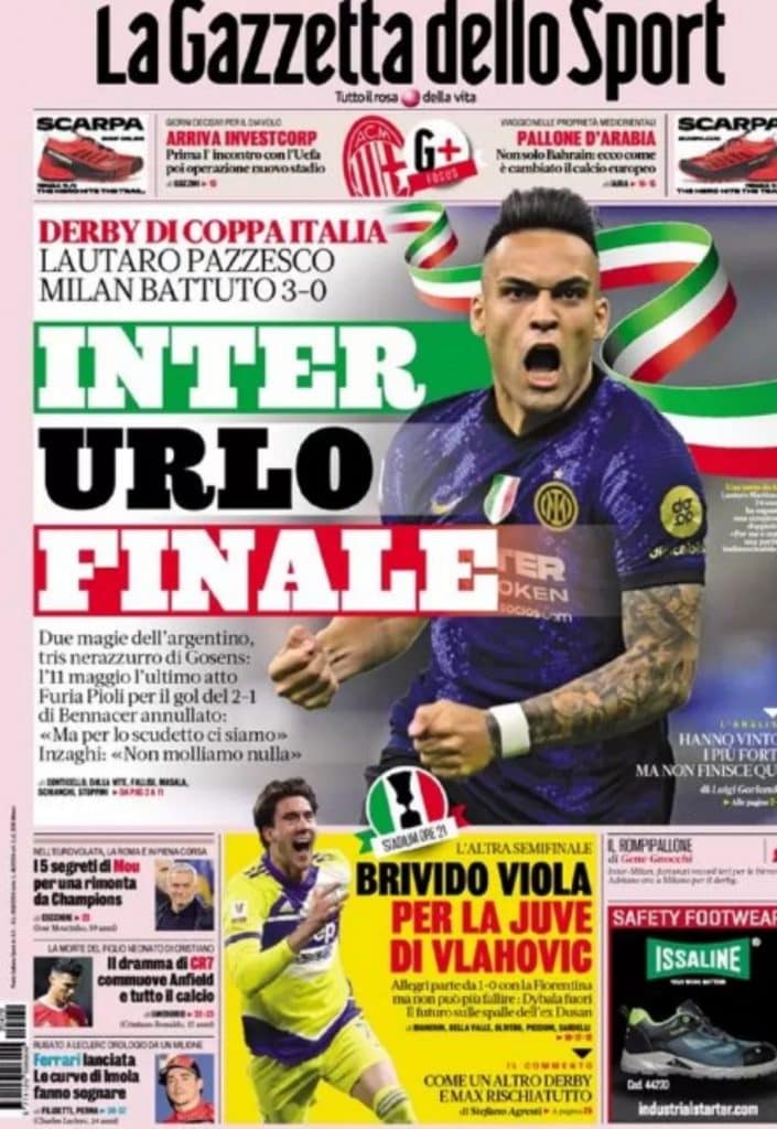 Intanto ieri si è giocata l’altra semifinale, il derby tra Inter e Milan. A vincere sono stati i nerazzurri con un netto 3-0. Una doppietta di Lautaro Martinez ha spaccato la partita, poi il gol di Gosens l’ha chiusa.