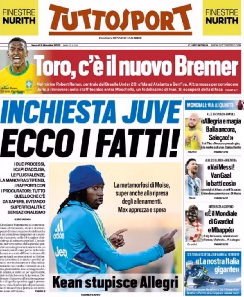Intanto però c’è il campo. E c’è chi in questi primi giorni sta facendo bene: “Kean stupisce Allegri. La metamorfosi di Moise, super anche alla ripresa degli allenamenti. Max apprezza e spera”.