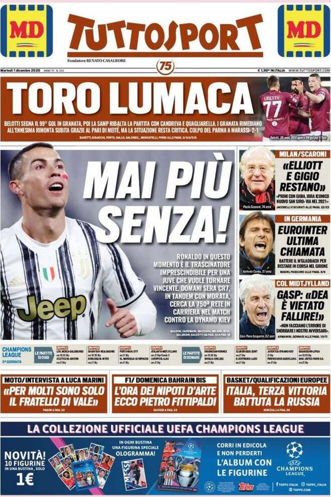 La prima pagina di Tuttosport