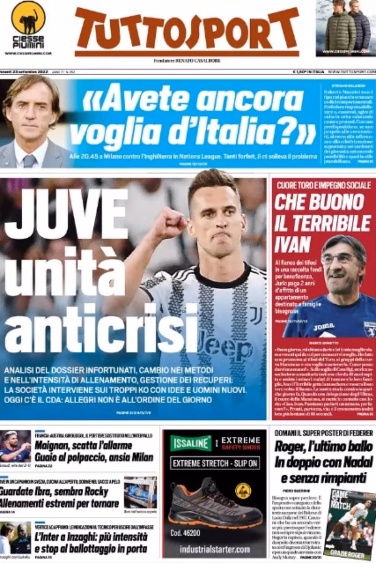 Oggi è venerdì 23 settembre 2022 e la redazione di Juvenews.eu vi augura una buonissima giornata.
