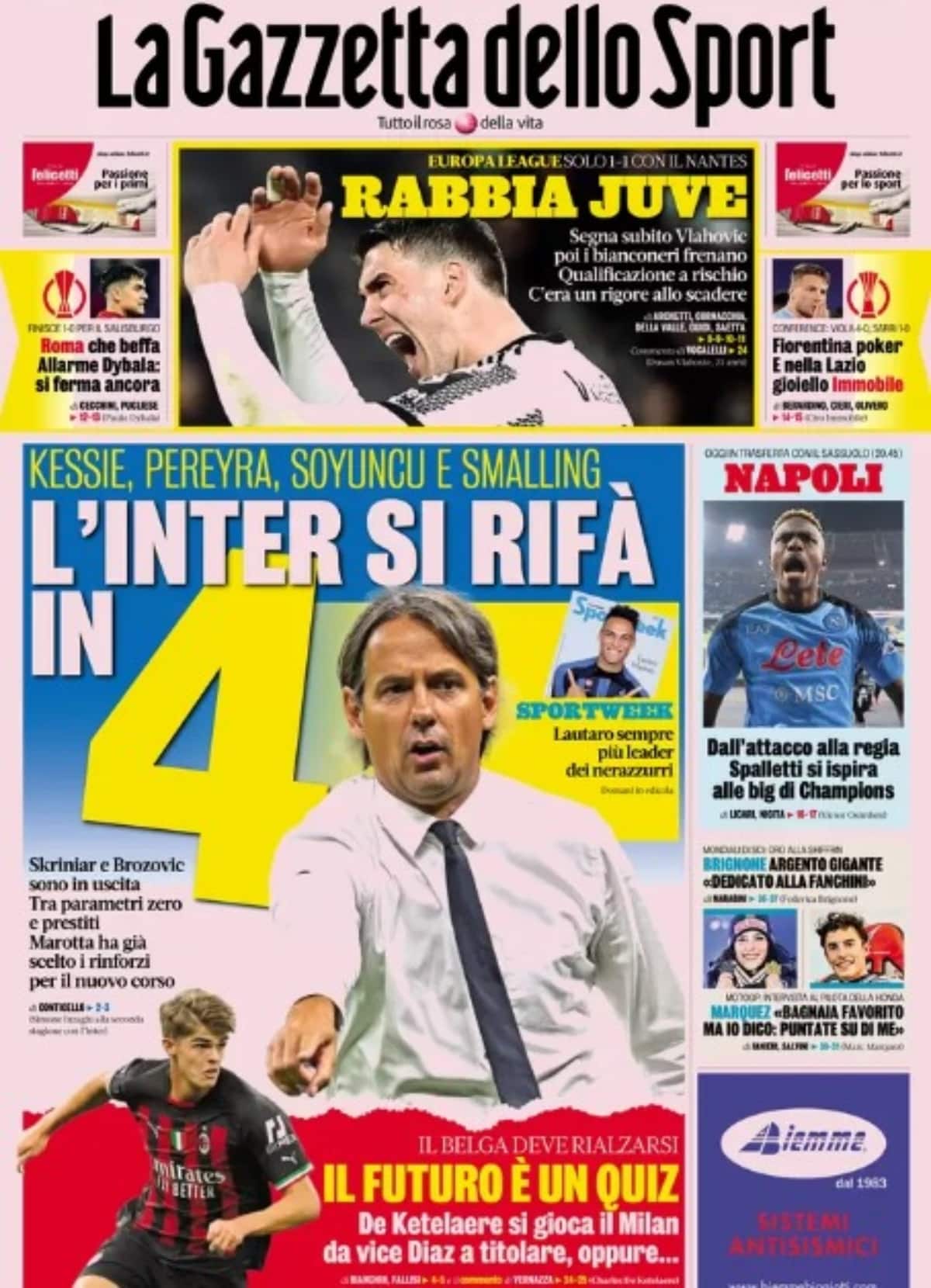 Il titolo è eloquente: “Rabbia Juve“. Nonostante una gestione rivedibile del vantaggio e poi dell’assalto dopo il pareggio, il calcio di rigore alla fine avrebbe potuto significare un successo fondamentale in chiave qualificazione.