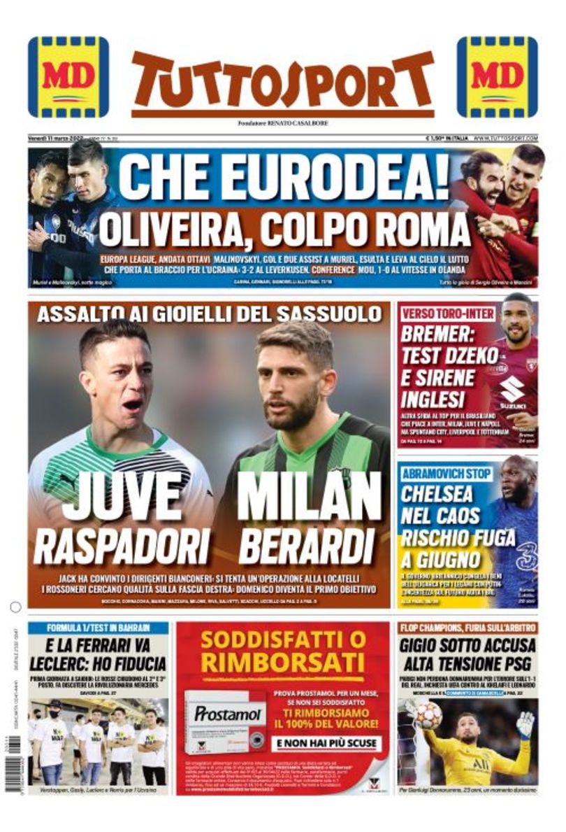 Tuttosport invece titola con Juve-Raspadori, nuova idea in casa Juventus.