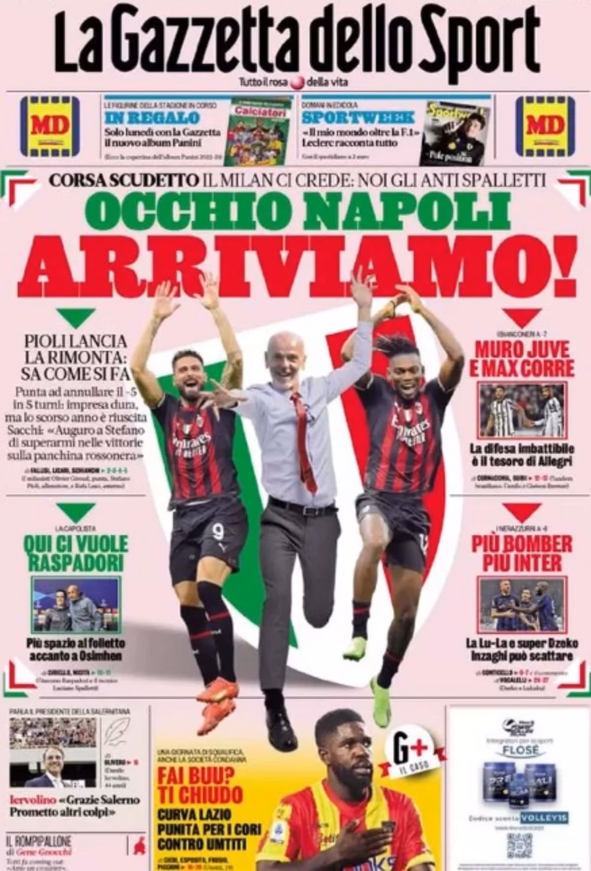 La Gazzetta dello Sport oggi in prima pagina si concentra proprio sulla grande rincorsa dei bianconeri: “Muro Juve e Max corre“.