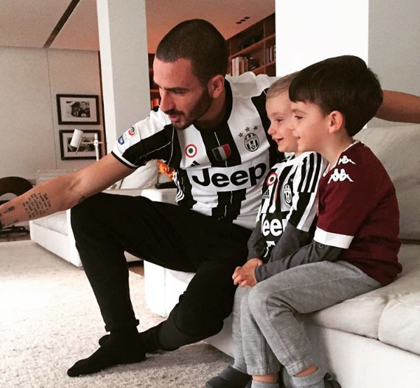 90 minuti di passione.”Questa la didascalia che accompagna un delizioso quadretto di famiglia che vede Leonardo Bonucci e i suoi figli davanti la tv a guardare il derby. Poche parole ma tanto amore in questa foto postata dal difensore sul proprio profilo Instagram. Ricordiamo che il centrale bianconero è fermo ai box per un problema muscolare al flessore.
