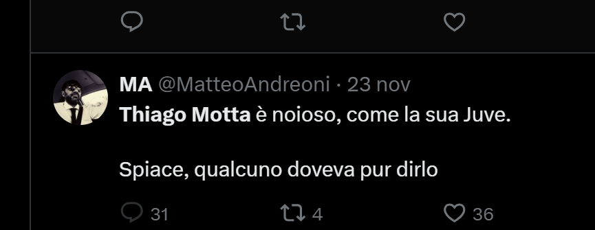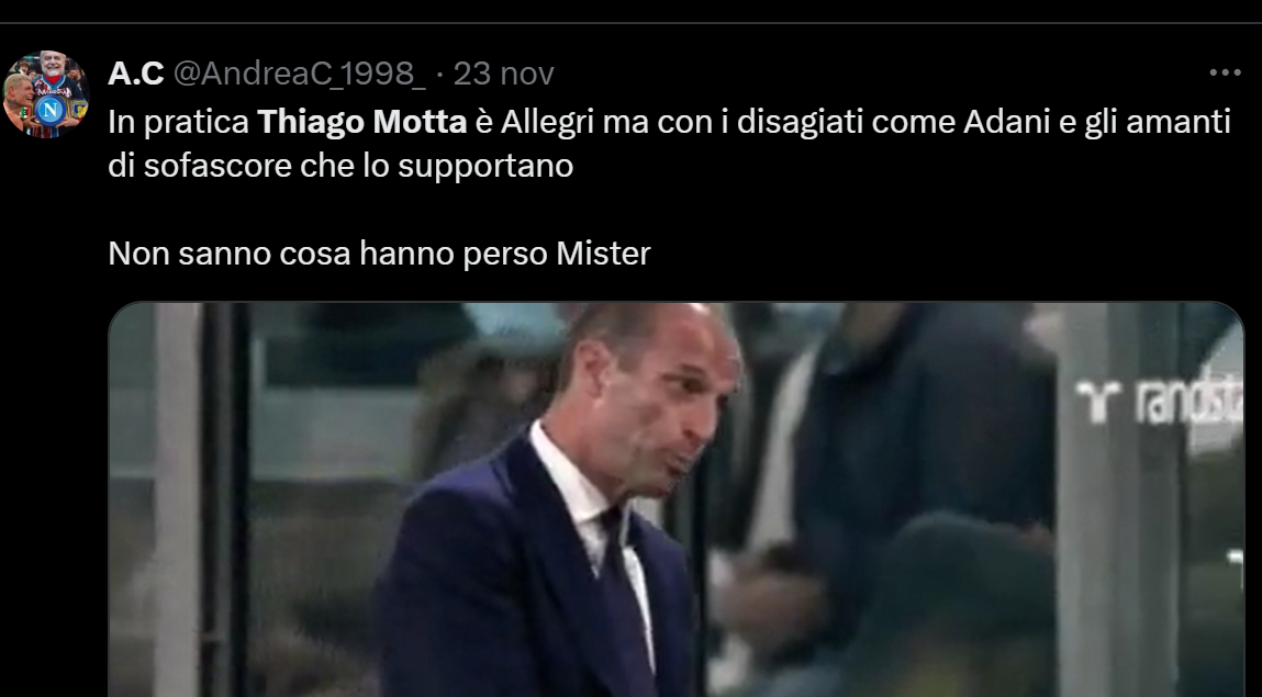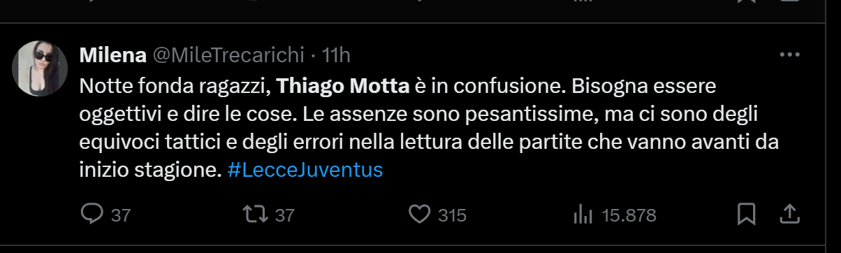 La partita contro il Lecce ha messo tutti i tifosi della Juventus in allarme. Era una grande occasione di provare ad accorciare rispetto alla concorrenza. E soprattutto era una partita da non perdere assolutamente. Ecco il motivo per cui se ne sta parlando in maniera super colorata e colorita. In special modo rispetto a ciò che riguarda Thiago Motta ed il suo futuro alla Juventus. Noi come sempre abbiamo raccolto le reazioni da parte dei tifosi bianconeri e le abbiamo messe all’interno di questo articolo che potete leggere semplicemente guardando qui sotto.