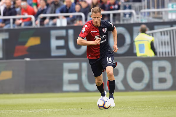 Il centrocampista sloveno del Cagliari si diverte in ritiro con il... calcio-basket. Questo è un numero da applausi!
